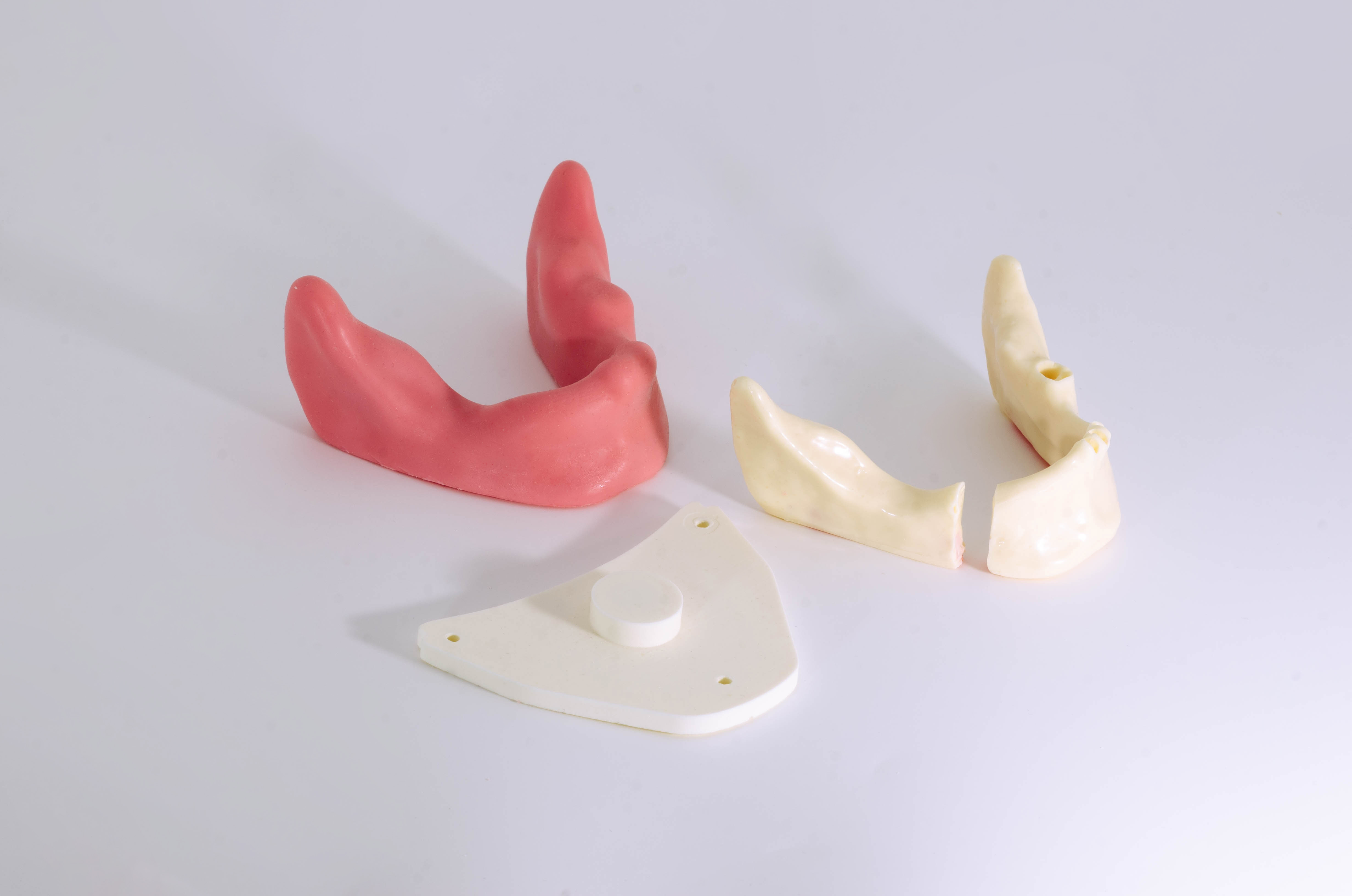 Данный симулятор воспроизводит одностороннее повреждение тела нижней челюсти, требующее хирургического вмешательства. Он предназначен для отработки алгоритмов стабилизации костных фрагментов в условиях, приближенных к клиническим.
