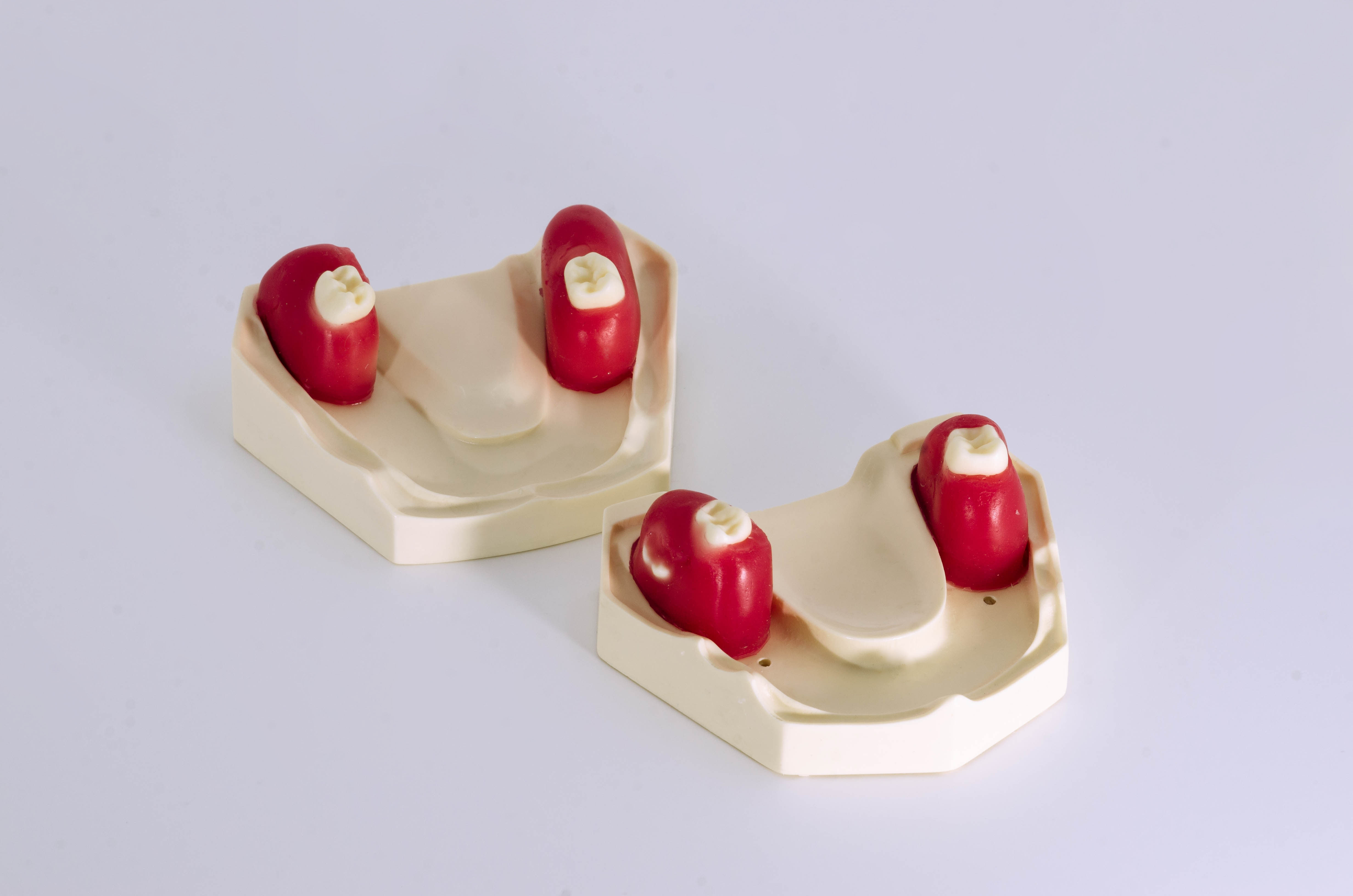 • Точное анатомическое воспроизведение: Имитация челюстного аппарата с фрагментами костной и десневой ткани, где погруженные зубы имеют естественное расположение.